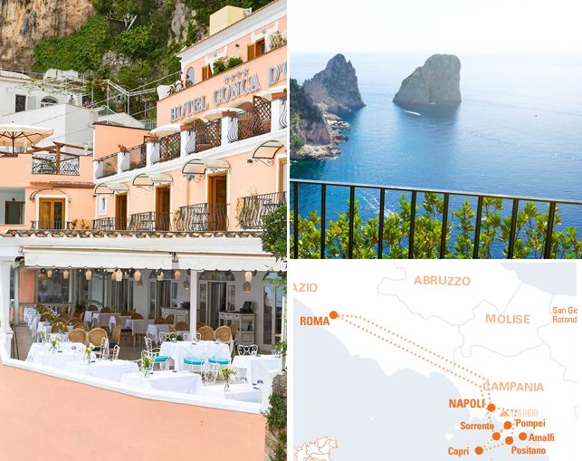 Roma > Sorrento > Pompéia > Capri > Positano > Nápoles > Roma